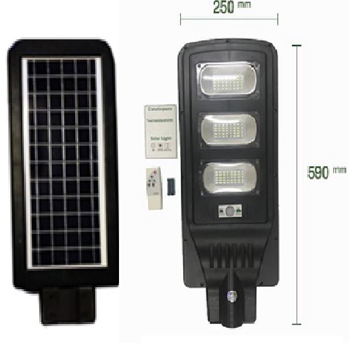 - Bộ sản phẩm gồm: : Cần gắn đèn/Đèn/Remote/tấm pin