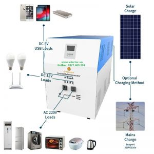 Máy phát điện năng lượng mặt trời cao cấp chính hãng HTT 500W-H có thể sử dụng nấu cơn, thắp đèn chiếu sáng ban đêm, sạc điện thoại, chạy máy vi tính, cắm tivi, tủ lạnh sử dụng các thiết bị điện trong gia đình…